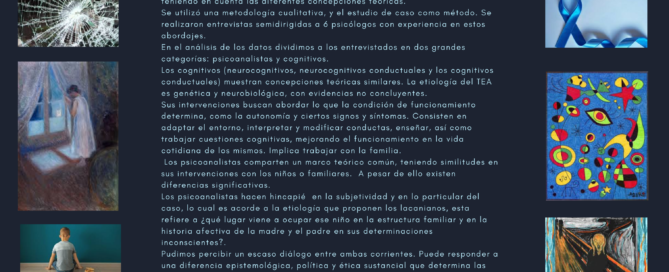 Esta investigación pretendió describir las intervenciones del psicólogo en el abordaje terapéutico de niños diagnosticados con TEA en el ámbito privado; teniendo en cuenta las diferentes concepciones teóricas. Se utilizó una metodología cualitativa, y el [...]