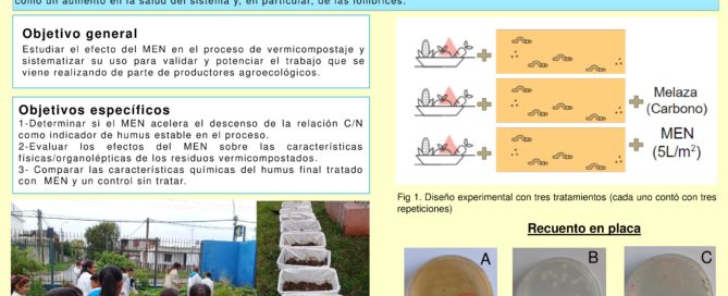 El proyecto “Efecto de microorganismos eficientes nativos en vermicompostaje” tuvo comoobjetivo estudiar el efecto de los microorganismos eficientes nativos (MEN) en el proceso devermicompostaje.El vermicompostaje es el proceso de reciclaje de materia orgánica que utiliza [...]