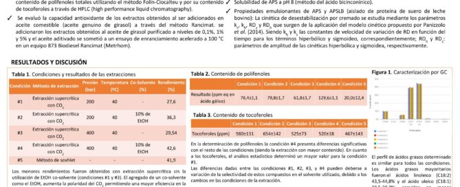 Efecto del método de extracción en las propiedades funcionales (antioxidantes y emulsificantes) en semillas de sésamo.