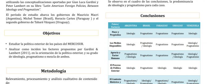 El Pragmatismo en la Política Exterior del MERCOSUR: ¿Ideología o Herramienta? Domínguez, Gabriel; Fallabrino, Carla y Magallanes, Líber. Profesor tutor: López, Camilo. Facultad de Derecho, Universidad de la República. Uruguay. El presente trabajo es un [...]
