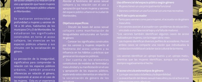 De usos y abusos: género, acoso y espacio público - Facultad de Ciencias Sociales Integrantes: Florencia Anzalone -Isabel Cedrés -Fernanda Delgado- Julián Reyes Docente orientador: Diego Sempol La investigación aborda el fenómeno del acoso callejero [...]