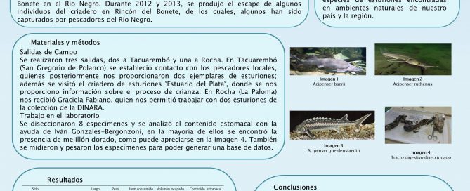 Titulo: Caracterización de nicho trófico de tres especies de Acipenser (Actinopterygi, Acipenseriformes) introducidas en el Rio Negro: bases para la estimación de su impacto ecológico en Uruguay Autores Aitor Azcárate, Florencia Clivio, Guillermo Martínez Docente [...]