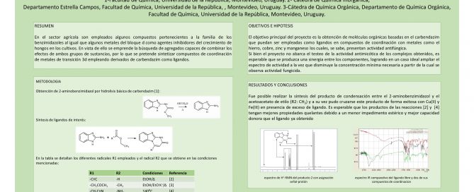 Título del Proyecto: Síntesis de Compuestos de Coordinación derivados de Carbendazim Servicio: Facultad de Química Integrantes del equipo: Juan Andrés Deleón Fuentes, Sebastián González Lucas, Guillermo Nicolás Bragunde Martínez Docentes orientadores: Livia Florencia Arizaga Travagilini, [...]