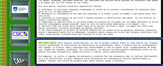 En el proyecto de investigación “De marginado a popular: Geeks un fenómeno de las TIC”, que llevamos adelante los estudiantes de la Facultad de Información y Comunicación Alejandro Prieto, Leandro Fernández, Gabriel Noguez y Maximiliano [...]