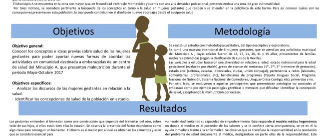 Objetivo: Conocer los conceptos e ideas previas sobre salud de las mujeres gestantes de un barrio del Municipio A de la ciudad de Montevideo, durante el período Mayo-octubre 2017 Metodología: Se realizó un estudio cualitativo, [...]