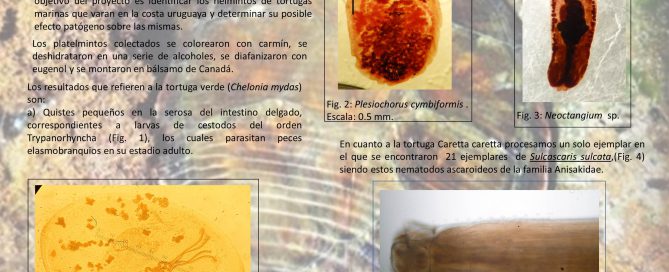Helmintos recuperados de tortugas marinas varadas en la costa uruguaya. Facultad de Veterinaria, UdelaR Veronica Figueroa, Sofia Rivero y Vannessa Massimino Docente: Osar Castro Como objetivo tenemos el de incrementar el conocimiento sobre la fauna [...]