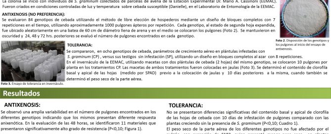 [CURLN] Evaluación de antixenosis y tolerancia de de Schizaphis graminum (Hemiptera: Aphididae) en cebada.