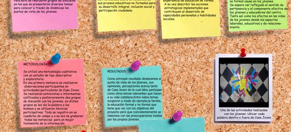 El presente proyecto tuvo como propósito conocer las percepciones de los jóvenes que concurren a Casa joven sobre la incidencia de sus procesos educativos no formales para su desarrollo integral, inclusión social y participación ciudadana; [...]