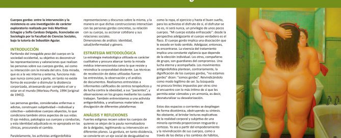 Cuerpos gordxs: entre la intervención y la resistencia es una investigación realizada por Inés Martínez Echagüe y Sofía Cardozo Delgado, licenciadas en Sociología por la Facultad de Ciencias Sociales, bajo la tutoría de Sebastián Aguiar. [...]