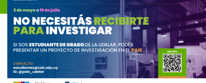 Programa de Apoyo a la Investigación Estudiantil (PAIE) Se encuentra abierta hasta el 19 de julio la convocatoria 2024 al Programa de Apoyo a la Investigación Estudiantil (PAIE). Este programa ofrece la oportunidad de desarrollar [...]