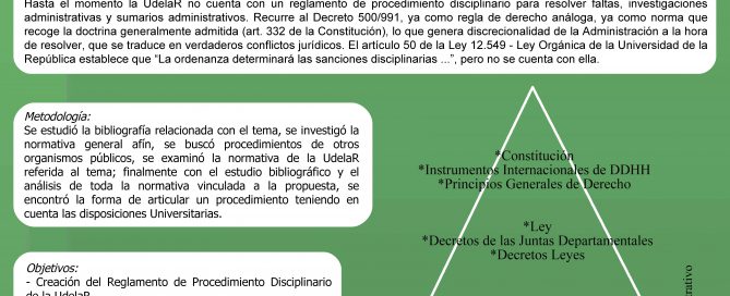 Dado que la UdelaR no cuenta con un marco regulador propio en materia de procedimiento disciplinario para resolver faltas, investigaciones y sumarios administrativos el equipo consideró formular el objetivo específico de generar una propuesta que [...]