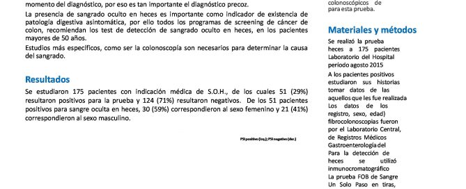 Detección precoz de cáncer de colon a través de la búsqueda de pérdidas sanguíneas intestinales (PSI) Facultad de Medicina (EUTM) Integrantes del equipo: Br.Florencia Abreo, Br.Stefanie Bilbao, Br.Catalina Durán, Br.Belén Mancebo Docente orientador: Lic.Gabriela Recoba [...]