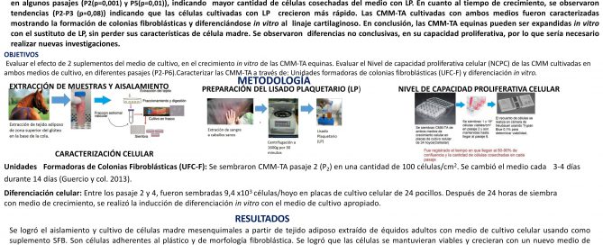 [FVET] EVALUACIÓN DEL EFECTO DE LA CRIOPRESERVACIÓN SOBRE EL POTENCIAL DE MULTIDIFERENCIACIÓN Y CRECIMIENTO IN VITRO DE LAS CÉLULAS MADRE MESENQUIMALES DERIVADAS DE TEJIDO ADIPOSO EQUINO
