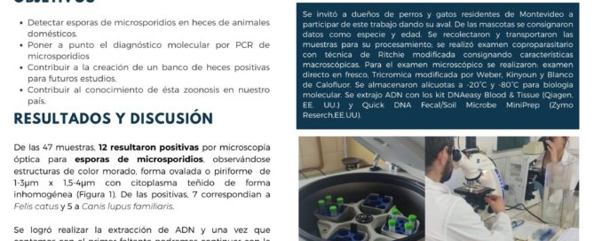 Microsporidios en muestras fecales de animales domésticos en Montevideo Paola Froster, Bruno Villagran, Nadia Lacruz, Florencia Laborde, Nahiara Chavasco, Jennifer Gil, Ariana Picardo, Yoseline Sosa. Docente: Nora Fernández. Departamento de Parasitología y Micología, Facultad de [...]