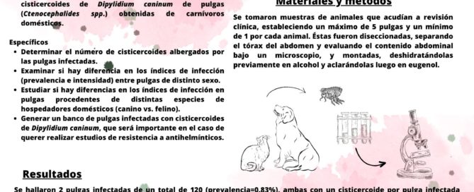 Estimación de la prevalencia de infección de pulgas de carnívoros domésticos con cisticercoides de Dipylidium caninum.; Facultad de Veterinaria, UdelaR; Integrantes: Bruno Tato, María Victoria Silva Chagas, Nataly Angelo, Hector Piccardo; Tutor: Oscar Castro. Colaborador [...]