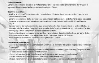 TÍTULO: Licenciatura en Enfermería del Uruguay, ¿disciplina camino a la Profesionalización? SERVICIO: Facultad de Ciencias Sociales. INTEGRANTES: Dos Santos, J. Tansini, M. DOCENTE ORIENTADOR: Hein, P. Objetivo: profundizar acerca de [...]