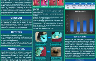 Evaluación de la fuerza adhesiva en sistemas de grabado total y autoacondicionamiento convencional y con clorhexidina en su composición. Br. Camila Silvera; Br. Romina Tessore; Br. Priscila Vazquez; Dr. Guillermo [...]