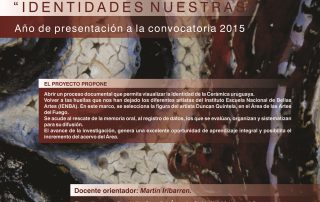 MÁS QUE HUELLAS EN EL BARRO. Identidades nuestras INSTITUTO ESCUELA NACIONAL DE BELLAS ARTES Resumen publicable: El Proyecto propone abrir un proceso documental, mediante la reflexión sobre las fronteras estéticas [...]